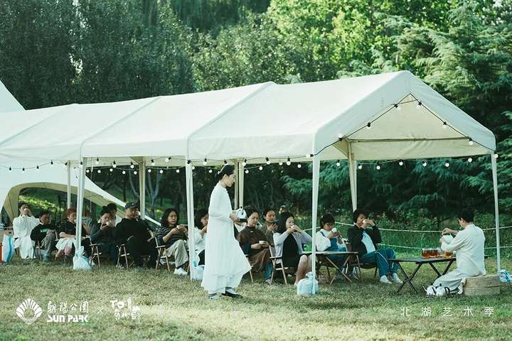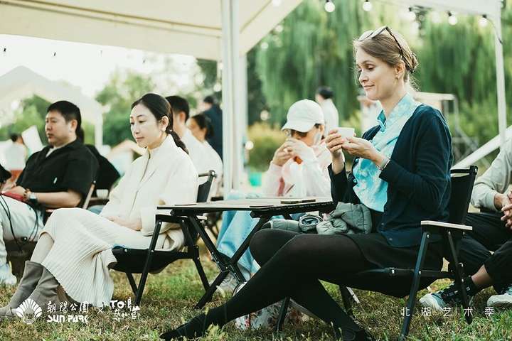 本次艺术季特邀“和静茶修”于北湖草坪打造一处特别的户外茶修空间,由创始人王琼每日于不同时段主持茶修雅集。她深谙茶道精神,以茶为媒,引导参与者暂离日常喧嚣,步入以茶观心的静谧时光。这不仅是一次品茗体验,更是一场回归内心秩序、安顿身心的美学修行。