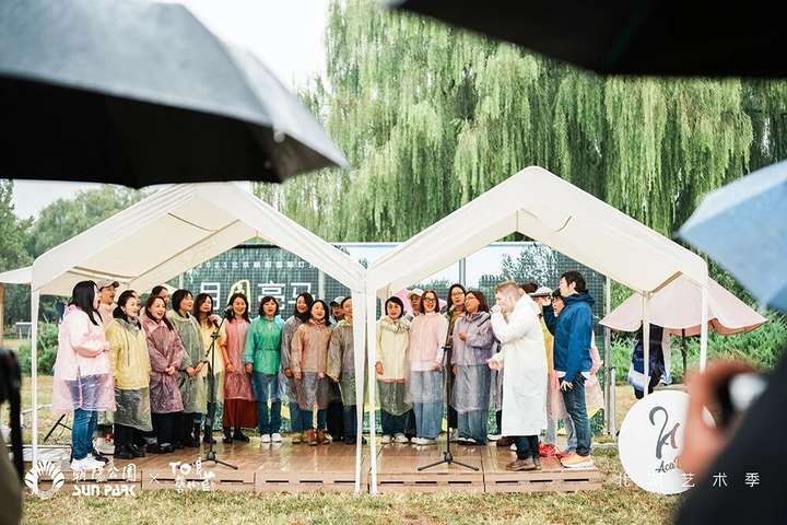 来自北京的人声合唱团体“爱卡人声”(AcaLab)带来了阿卡贝拉快闪演出。他们以纯人声编织旋律,打破无伴奏合唱的传统边界,让音乐成为可流动、可对话的公共艺术。六年来,他们从咖啡馆唱到剧院舞台,此次在北湖大草坪朦胧的秋雨中,以自由、即兴的形式,与观众共赴了一场温暖而沉浸的声音旅行。