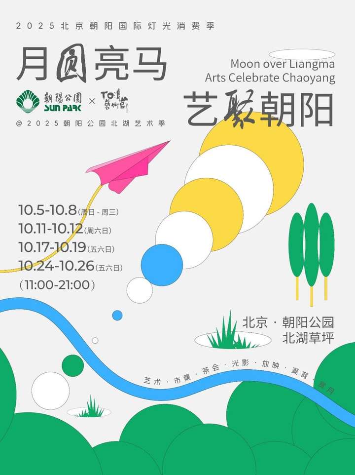 艺术、光影、市集、露天电影、公共艺术特展、儿童美育……当多元艺术形式与自然相遇,朝阳公园这片城市绿洲九鼎,在金秋十月、国庆中秋双节同辉之际,超越物理空间的界定,蜕变为一方充满诗意的沉浸式艺术场域。10月5日,作为“2025北京朝阳国际灯光消费季”的预热篇章,“月圆亮马 艺聚朝阳——朝阳公园×To浪艺术节@朝阳公园北湖艺术季”于朝阳公园北湖大草坪盛大启幕。这不仅是一场活动,更是一次以艺术赋能城市空间、以美学唤醒生活感知的深度实践。