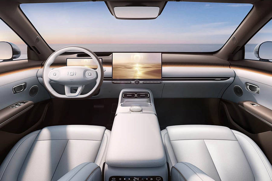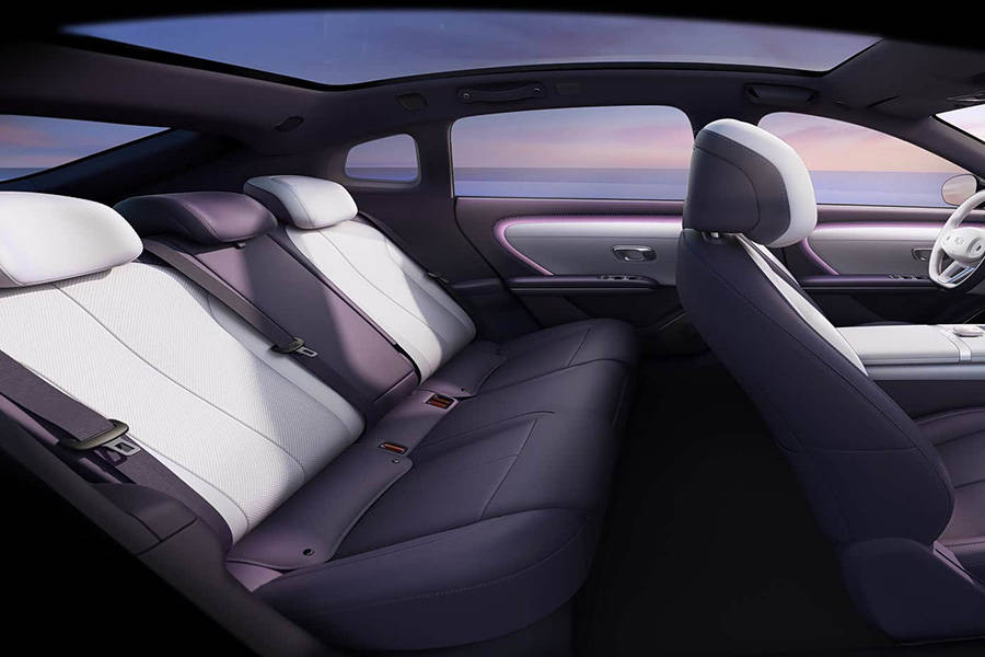 启源A06内饰整体造型简洁,减少了物理按键的设计,同时中控屏和仪表盘设计都向着如今的新势力品牌靠拢,看着也比较雅致。细节来看,车内还配备无线充电,并加入了炫彩的氛围灯。另外,前排座椅看上去具有不错的包裹感,后排座椅还支持145度椅背调节,加上全景天窗等配置的加入,让它的车内氛围相当不错。配色方面,其提供紫色+白色、棕色+白色的双色设计可选,满足不同用户审美需求。